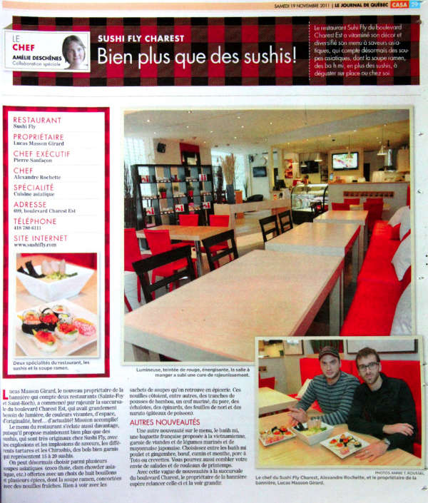 Rachat de la bannière de restauration Sushi Fly, qui a été l'une des plus grandes bannières de sushis dans les années 2000 au Québec et achat de parts dans 3 restaurants et 1 pub, situés dans le Vieux-Québec.